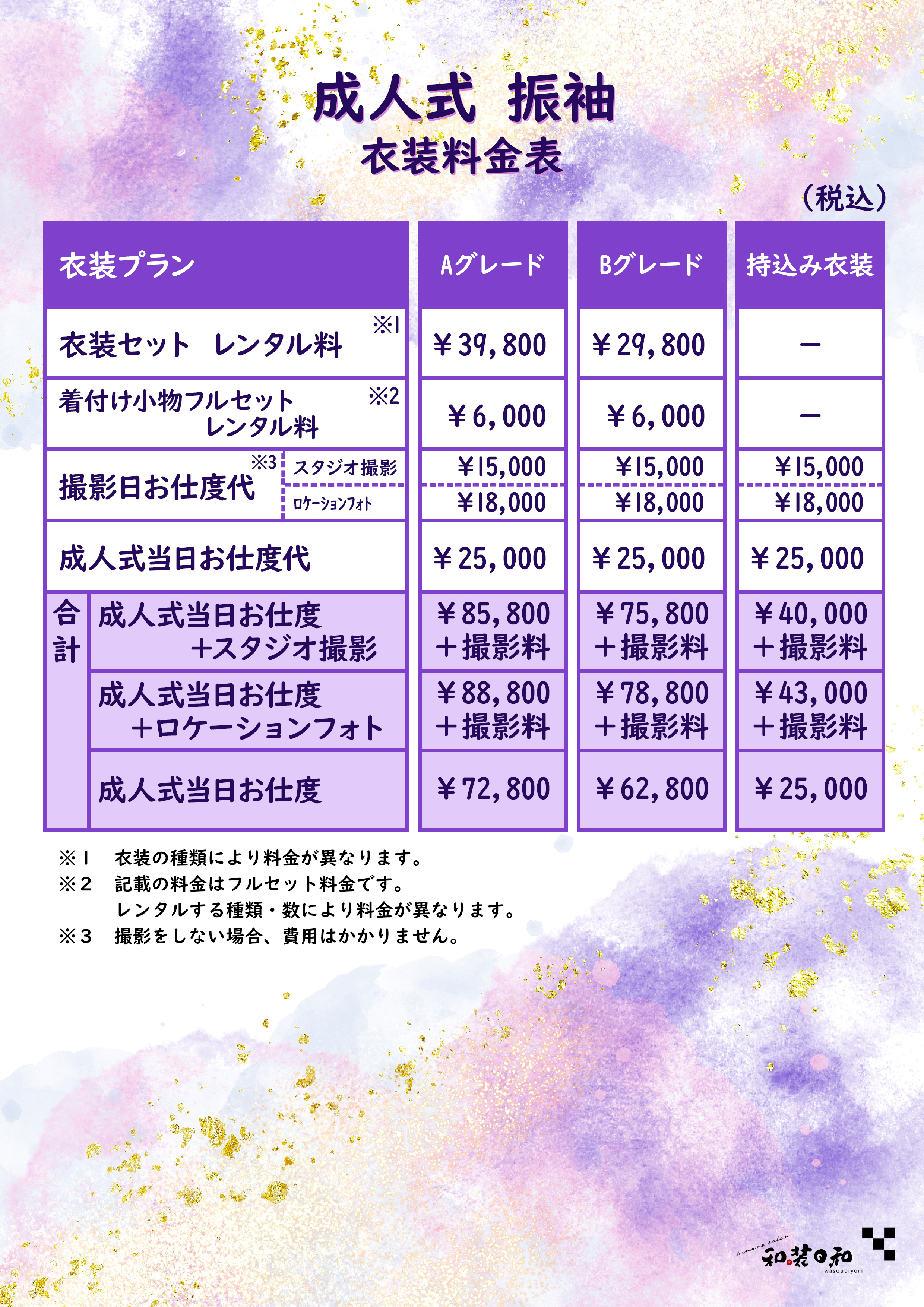 お選びいただいた衣装はお持ち帰り可能です。当日は忘れずにお持ちください。また店舗での保管も可能です。お好きな方をお選びください。